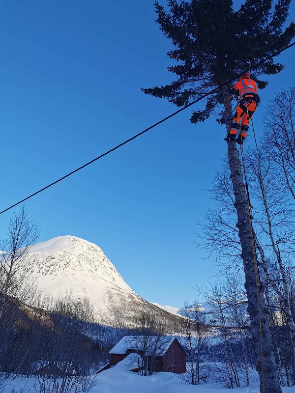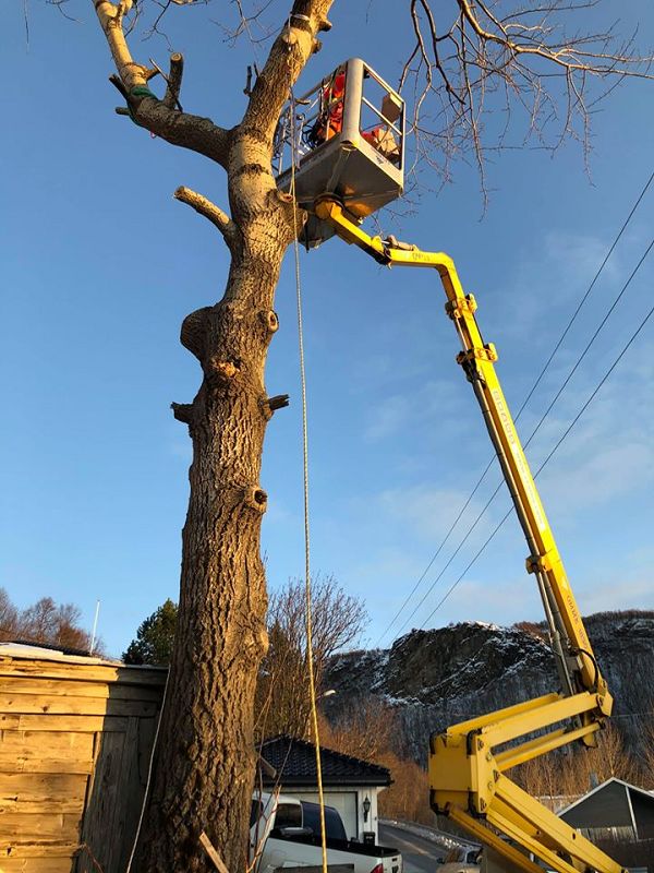 Trefelling, motorsag og klatretjenester, stubbefres, fliskutter, vanskelige trær.
